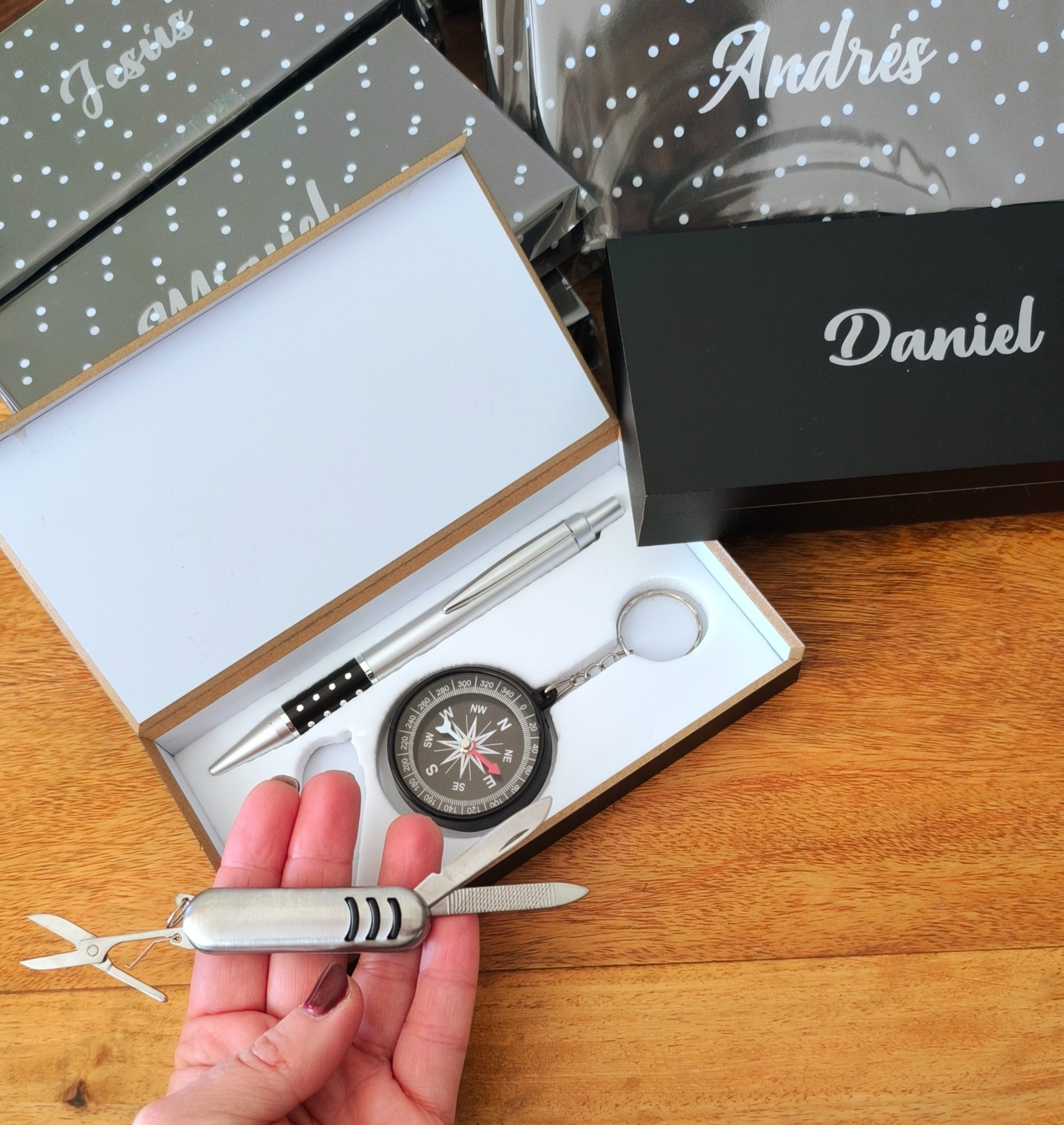 Set brujula, boli y navaja llavero